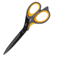 得力6027合金钢大号剪刀涂层尖头家用多功能办公室裁缝手工小黑色刀片裁缝剪刀